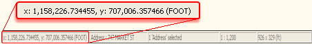 Displays the coordinates of the current mouse pointer's position in the mapping window as you move the mouse around in the map.