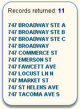 After clicking the "search" button, or pressing the <enter> key, the user will see results similar to this: