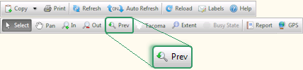 The Zoom Previous button allows the user to redraw the mapping window at the previous zoom level and location. There is no comparable zoom next/forward in this application.