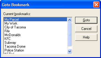Once the user selects the desired bookmark the mapping window will zoom and recenter the map on that saved location.